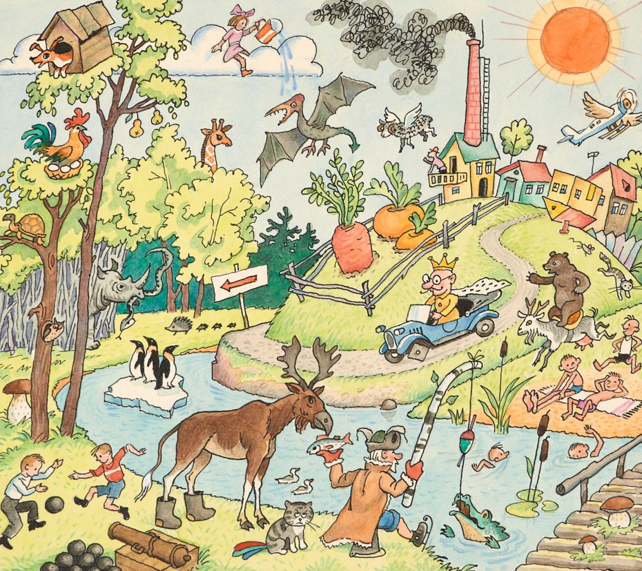 Нужно выбрать персонажа из списка и отправь его в путешествие, что изображено на картинке. Сочинить сказку о новом приключении героя.
